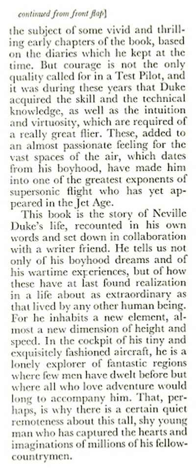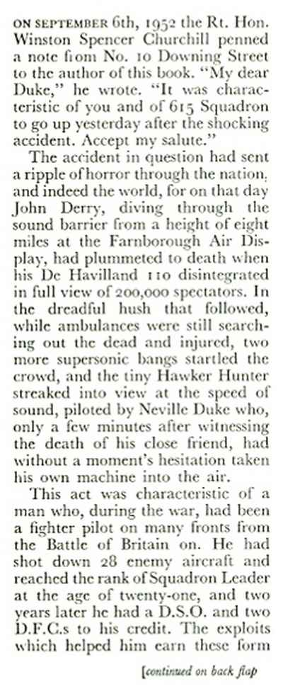 Chief test pilot for Hawker, carrying out most of the testing on the Hunter. As this was my favourite aircraft when I was a boy (in fact it probably still is), Duke was my hero. He also shot down 28 enemy aircraft in the War, flying Kittyhawks and Spitfires.