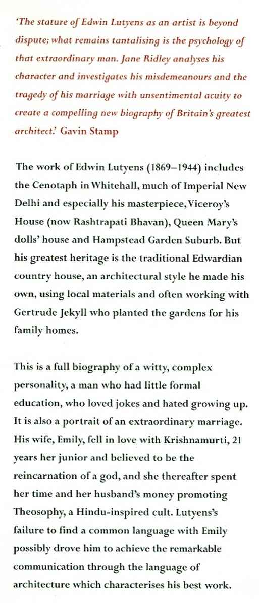 A Life of Edwin Lutyens, illustrations in colour and b&w from paintings, portraits & photographs, bibliographical notes and index, xii & 484 pp, signed on title-page by the author, grey boards in d/w, top of spine slightly bumped, otherwise very good, Chatto & Windus 2002