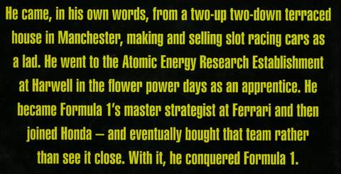 The Man and the Team that Turned Formula 1 Upside-Down, colour photographic illustrations, notes to each chapter, chronology, index, 320 pp, black boards in d/w, top and bottom edges of d/w very slightly creased, top closed edge of pages slightly darkened, otherwise in very good condition, Haynes Publishing (Yeovil, Somerset) 2009