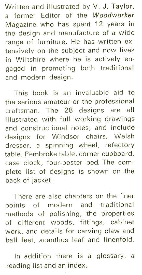 28 Working Designs for the Craftsman, b&w drawings, diagrams and parts list for every design (see specimen page below), bibliography, glossary, index, 192 pp, brown boards in d/w, edges of d/w a little creased and rubbed with very small piece missing at bottom edge, closed edges of pages, margins of pages and rear cover of d/w a little darkened, otherwise in very good condition, Stobart & Son 1987