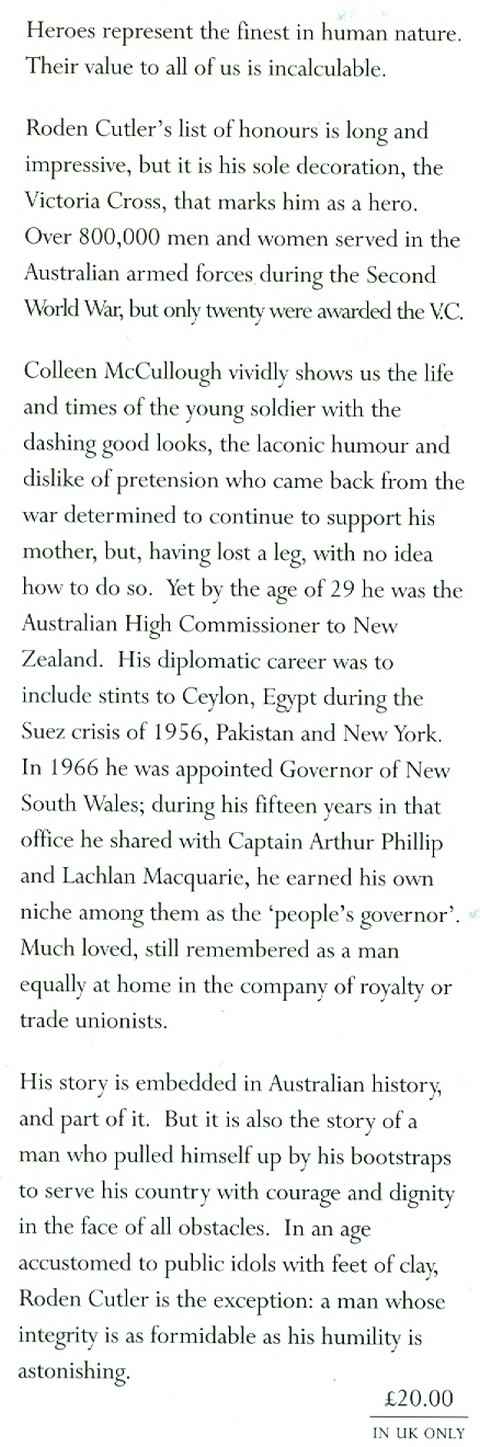 The Life of Roden Cutler, V.C., illustrations from b&w photographs, maps, viii & 418 pp, maroon boards in d/w, spine of d/w faded, otherwise in very good condition, Weidenfeld & Nicolson 1999