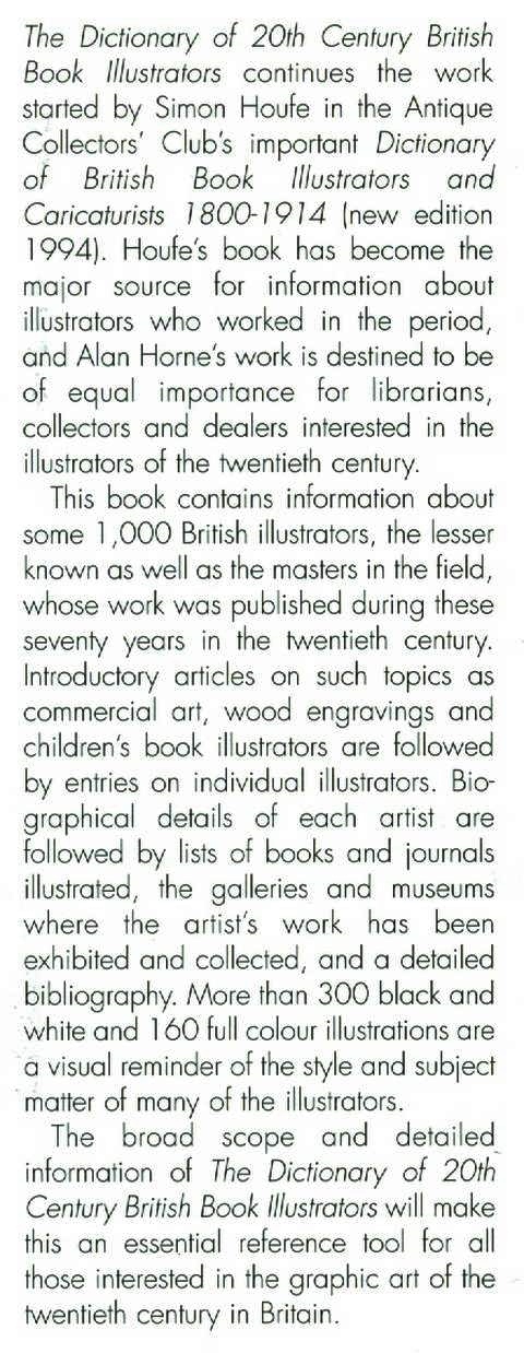Very numerous reproductions of book illustrations in colour and b&w (see specimen page below), 456 pp, dark blue cloth in d/w, base of spine of d/w a little bumped, slight damp stain to base of rear hinge (not affecting book itself), spotting to top closed edge of pages, otherwise in very good condition, Antique Collectors’ Club (Woodbridge, Suffolk) 1994