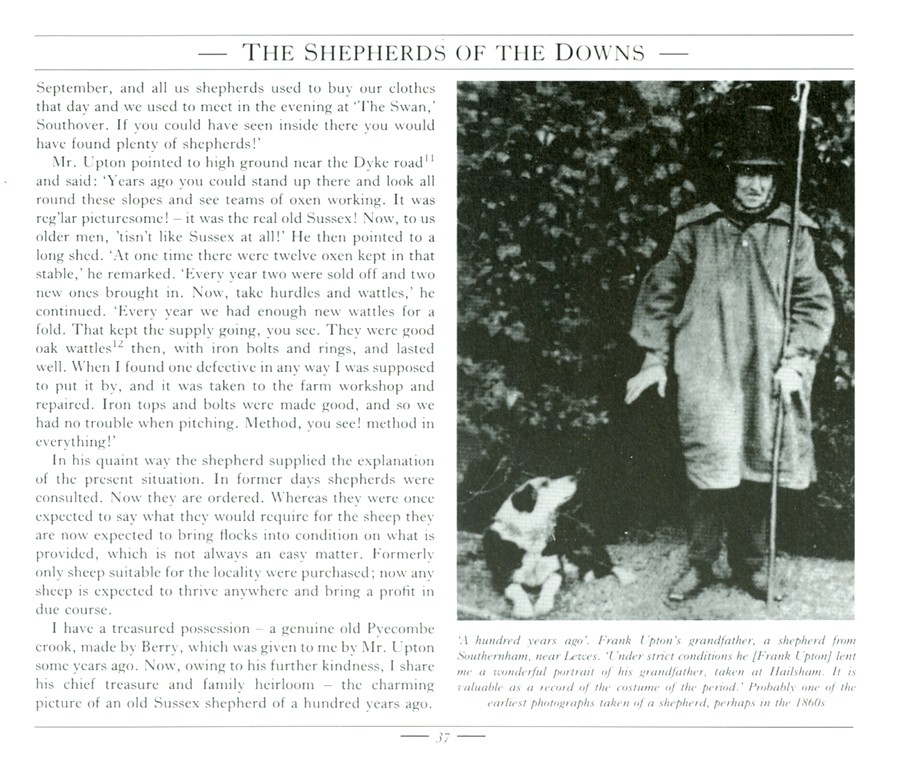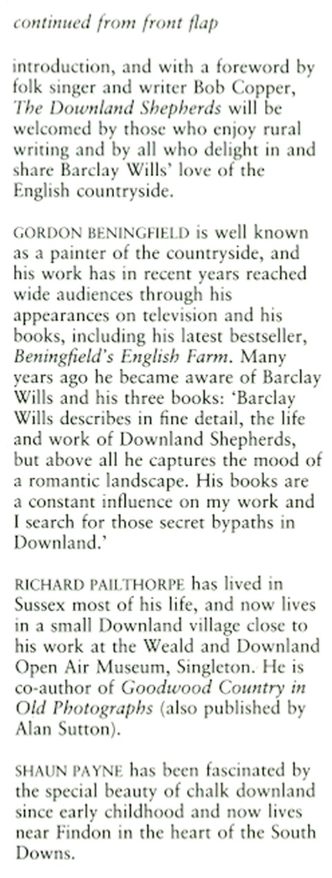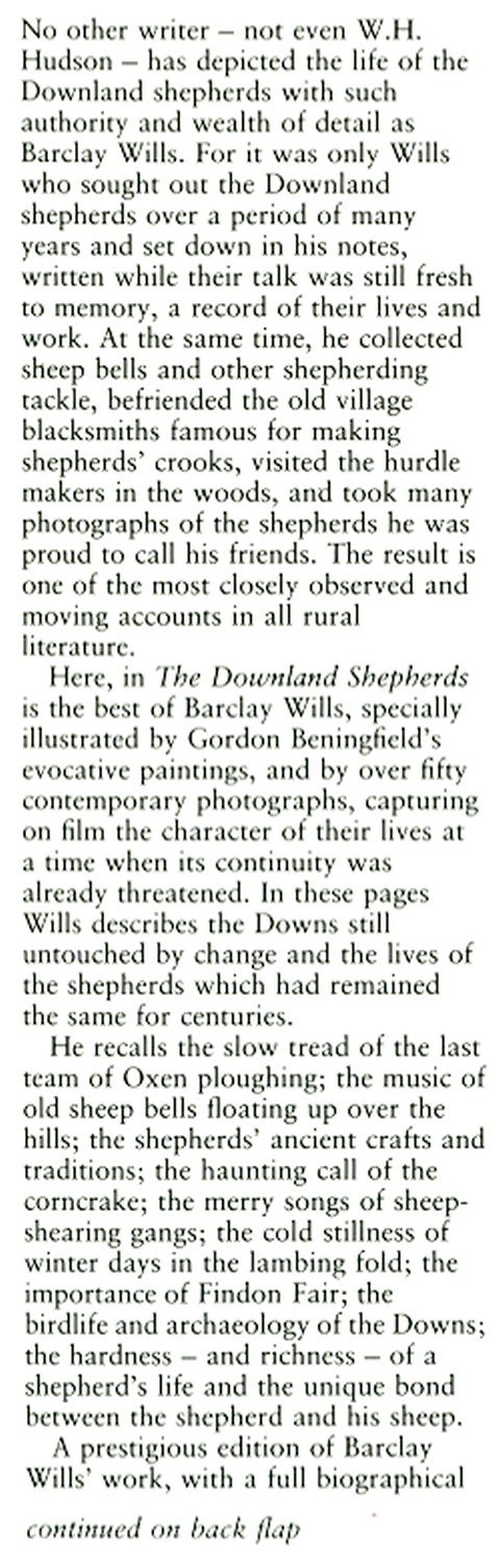 See the description from the dustwrapper flaps. The book is a re-set and extra-illustrated edition of extracts from Wills’ 1938 book ‘Shepherds of Sussex’, now extremely rare – see specimen page below.
