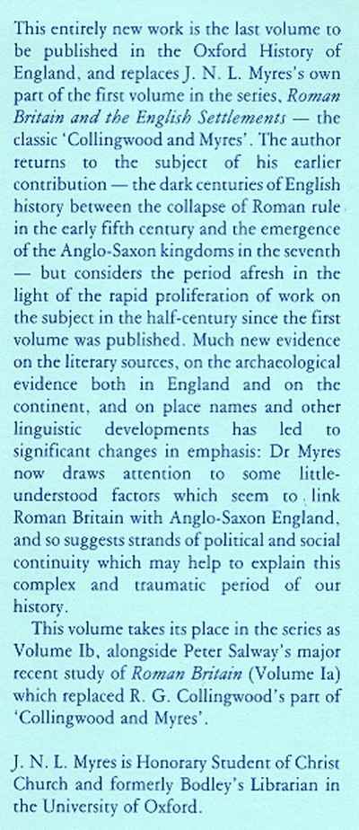 Covers the period between the collapse of Roman rule in the 5th century and the emergence of the Anglo-Saxon kingdoms in the 7th century. See the description (below) from the dustwrapper flap.