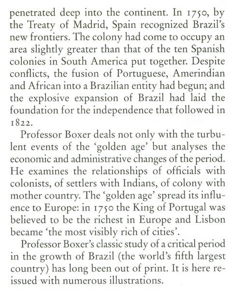 Growing Pains of a Colonial Society 1695-1750, Aspects of Portugal series, illustrations (some in colour) from photographs, paintings, engravings, reproductions of contemporary maps, appendices, glossary, extensive notes, bibliography, index, xvi & 443 pp, brown boards in d/w, small bump to top edge of front cover, small marks in margin of two of the illustrations, otherwise in very good condition, Carcanet (Manchester) 1995