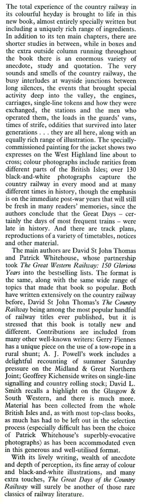 Books > Railways > THE GREAT DAYS OF THE COUNTRY RAILWAY