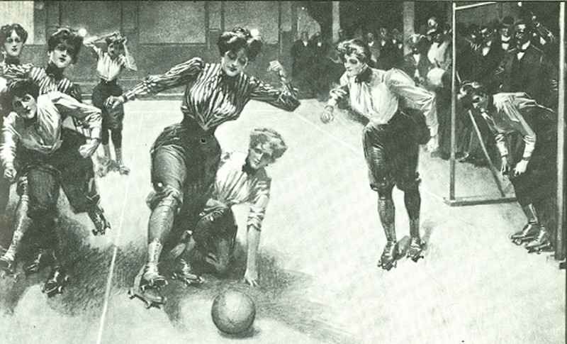 The author was Editor of the Illustrated London News in 1977. As action photography was in its infancy in Edwardian times, the magazine had to illustrate anything that moved by means of detailed paintings – see the example below, showing wasp-waisted ladies playing football on roller-skates . . . .