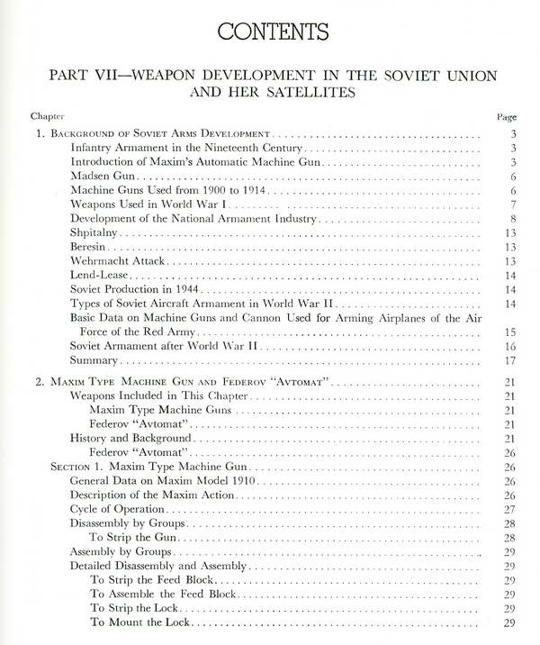 History, Evolution and Development of Manual, Automatic, and Airborne Repeating Weapons, Volume II, Part VII (only), The Soviet Union and Her Satellites, very numerous illustrations from b&w photographs, diagrams and exploded views, index, xxii & 215 pp, red cloth (no d/w), covers damp-marked and damp-staining to bottom edge of 25 pages and last 16 pages, fore-edge of pages a little crinkled, otherwise in very good condition with solid binding, Paladin Press (Boulder, Colorado) 1961