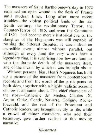 The massacre of the Huguenots in Paris in 1572 – see the description (below) from the dustwrapper flap.