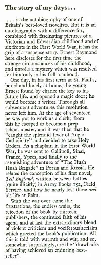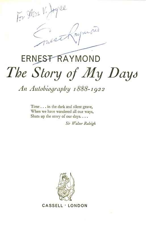 An Autobiography 1888-1922, signed inscription from author on title-page (see below), frontispiece and b&w photo illustrations, x & 191 pp, green boards in d/w, very good condition, Cassell 1968