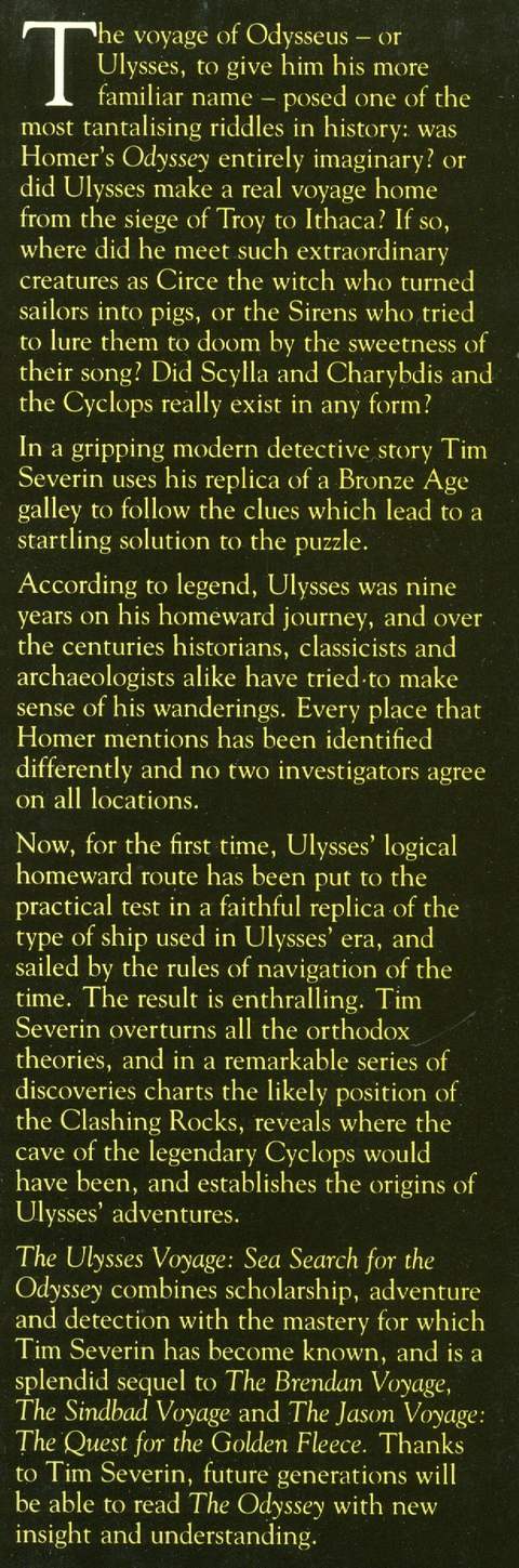 Sea Search for the Odyssey, very numerous illustrations from colour photographs and pencil drawings by Will Stoney, eight maps (including double-page location map), index, 253 pp, black boards in d/w, top and bottom edges of d/w a little creased, otherwise in very good condition, Book Club Associates 1987