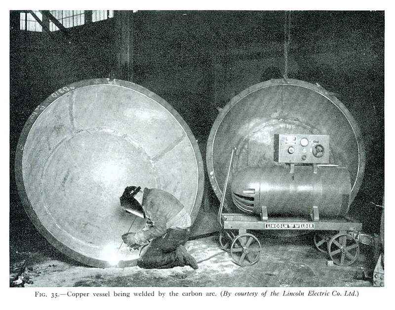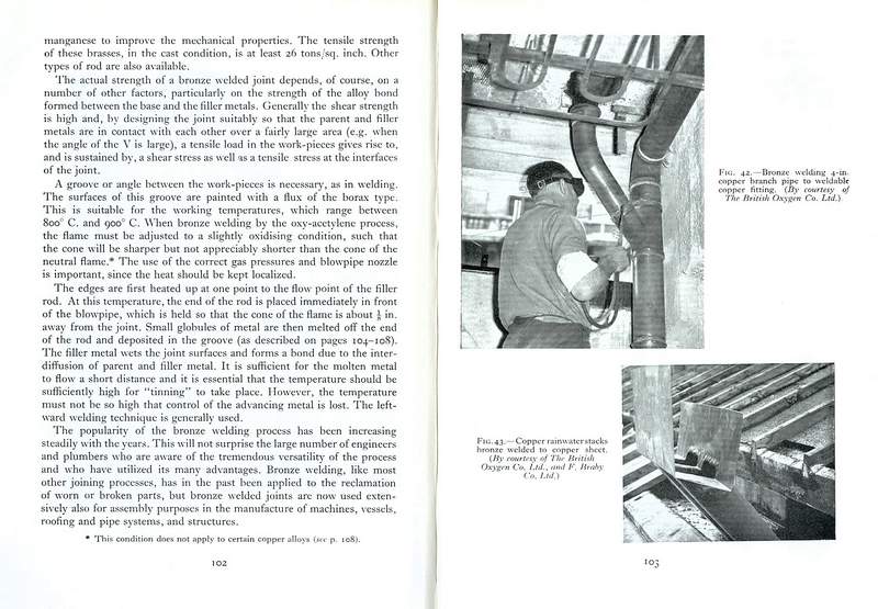 4th impression, revised, numerous illustrations from b&w photographs (see examples below), line-drawn diagrams, tables in text, further tables in appendices, bibliography & index, 191 pp, green cloth (no d/w, but I doubt whether there was one), covers slightly marked, spine a little sunned, otherwise in very good condition, Copper Development Association 1956