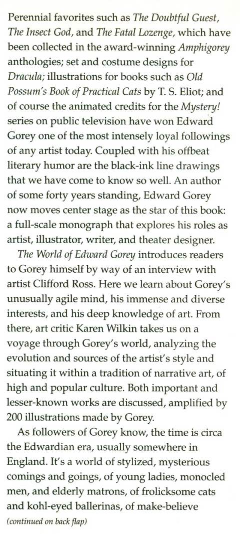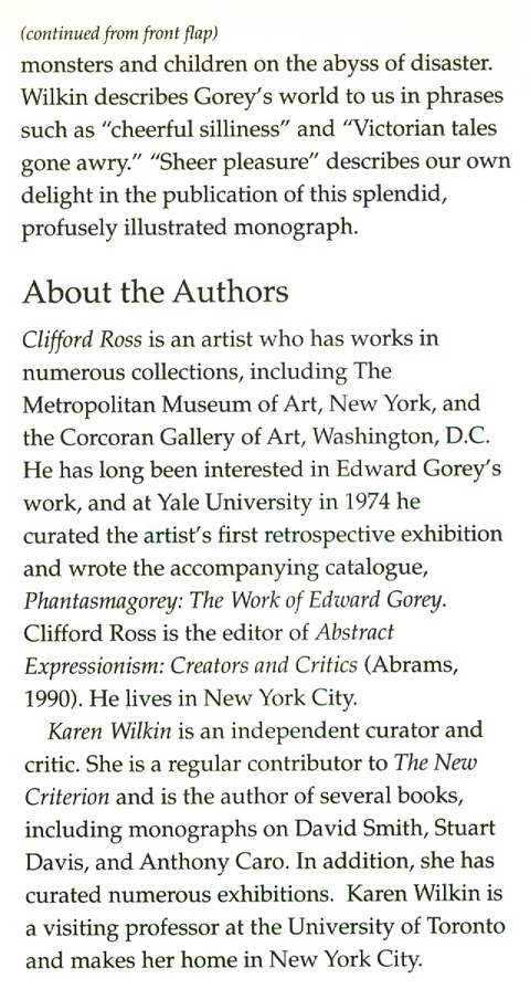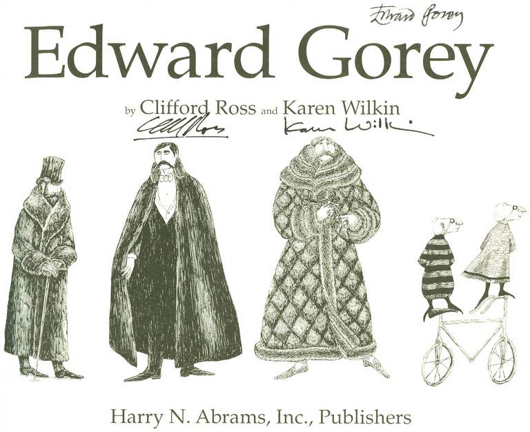 Signed on the title page by Edward Gorey and by the two authors (see picture below), 200 line-drawings, including 24 plates in full colour, a few b&w photographs, chronology, bibliography, 192 pp, black cloth in d/w, in near fine condition, Harry N. Abrams Inc. (New York) 1996