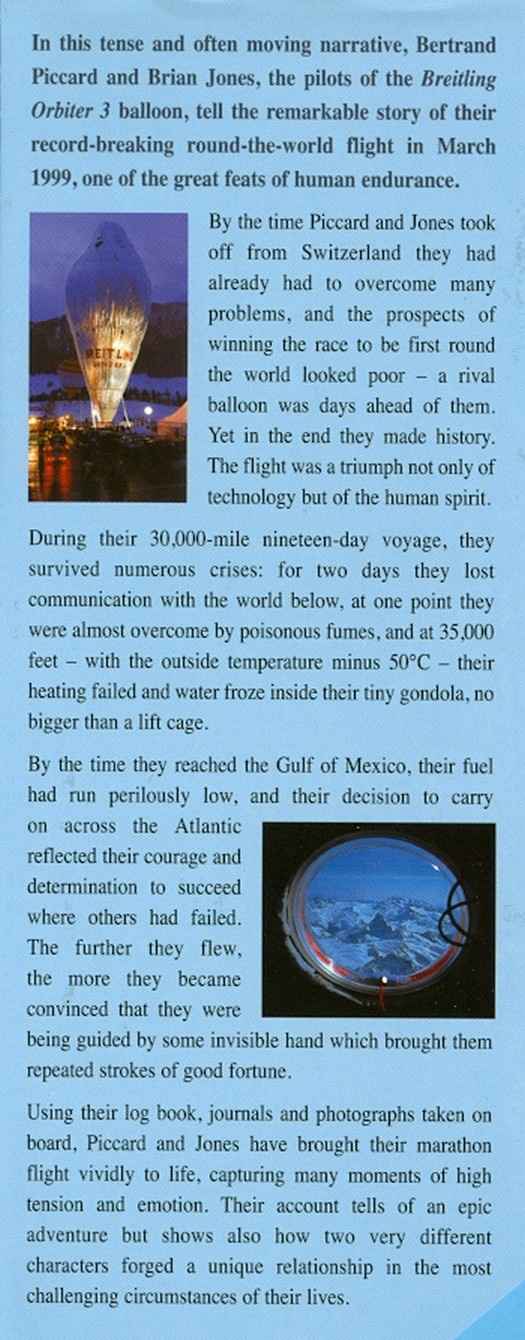The Balloonists’ Own Epic Tale of Their Round-the-World Voyage, illustrations from colour photographs, route-maps, diagrams of the balloon, appendix giving details of previous round-the-world attempts, x & 308 pp, blue boards in d/w, very good condition, Headline 1999
