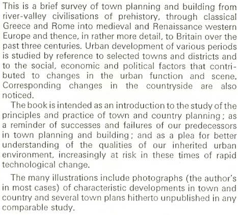 Numerous b&w illustrations from photographs, drawings, master plans, floor plans, artists’ impressions, diagrams, footnotes, bibliography, index, xii & 193 pp, black cloth in d/w, top edge of d/w slightly creased with small tears (neatly repaired), otherwise in very good condition, Edward Arnold 1971