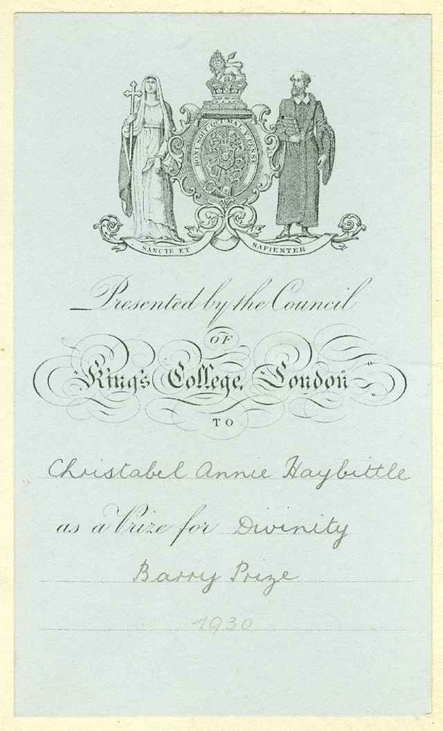Quite why the winner of the 1930 Barry Prize for Divinity from King’s College, London should have received a book on zoology I have no idea . . . .