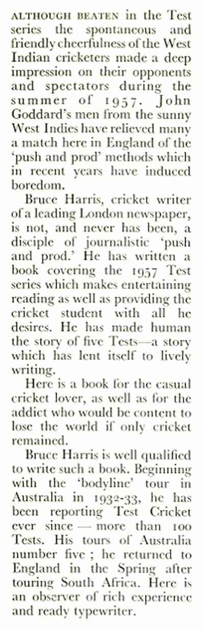 Books > Sport > WEST INDIES CRICKET CHALLENGE 1957
