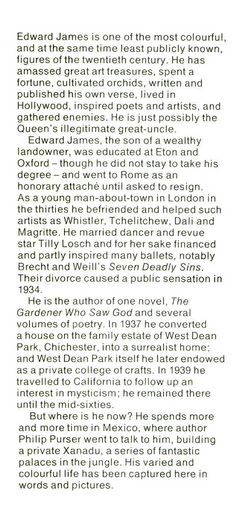The Extraordinary Worlds of Edward James, numerous b&w illustrations from photographs, paintings, drawings, cartoons and book jacket designs, 128 pp, black boards in d/w, top of d/w a little creased, otherwise in very good condition, Quartet Books 1978
