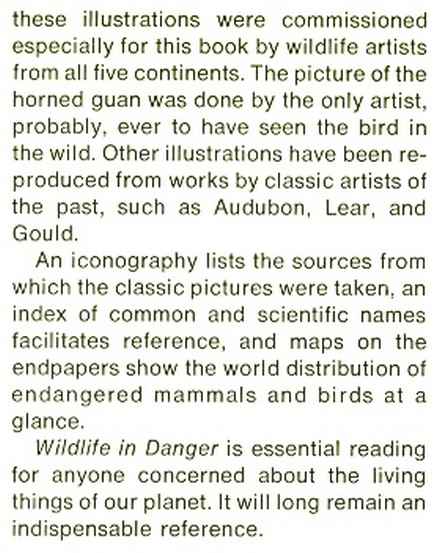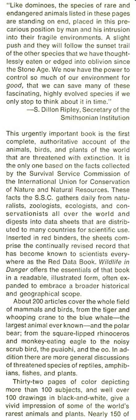 “The first complete, authoritative account of the animals, birds and plants of the world that are threatened with extinction”. See the description (below) from the dustwrapper flaps.
